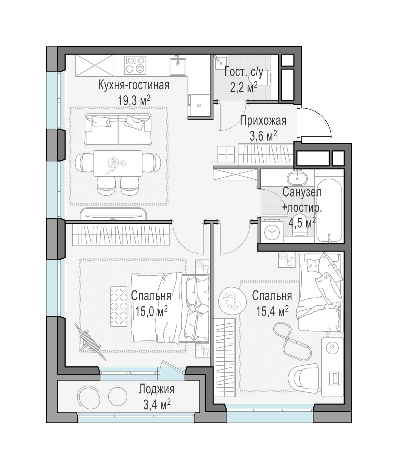 ГлавнаяЖилая недвижимостьЖК «Филатов Луг»3-комнатная квартира № 6