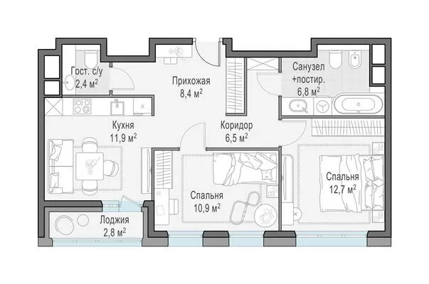 ГлавнаяЖилая недвижимостьЖК «Филатов Луг»2-комнатная квартира № 6