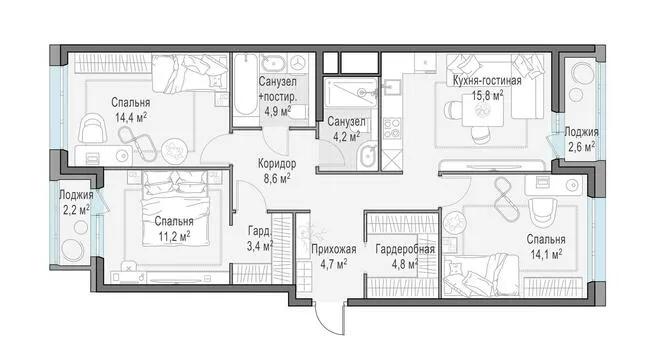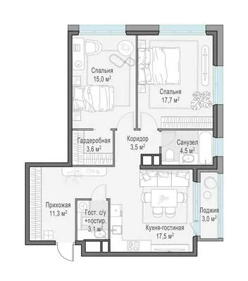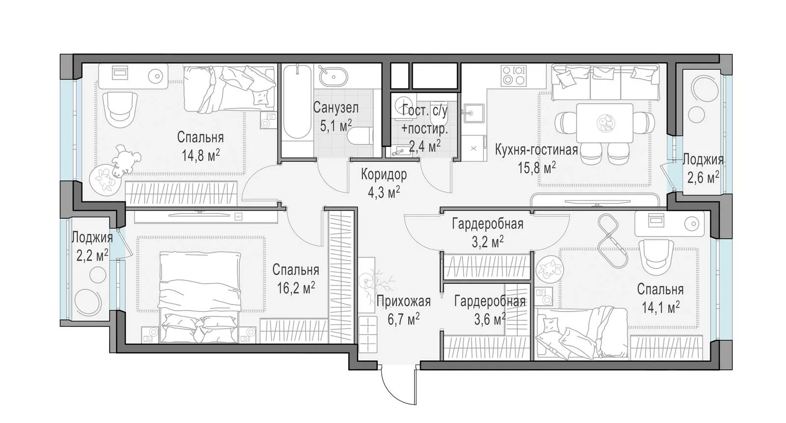 ГлавнаяЖилая недвижимостьЖК «Филатов Луг»3-комнатная квартира № 2