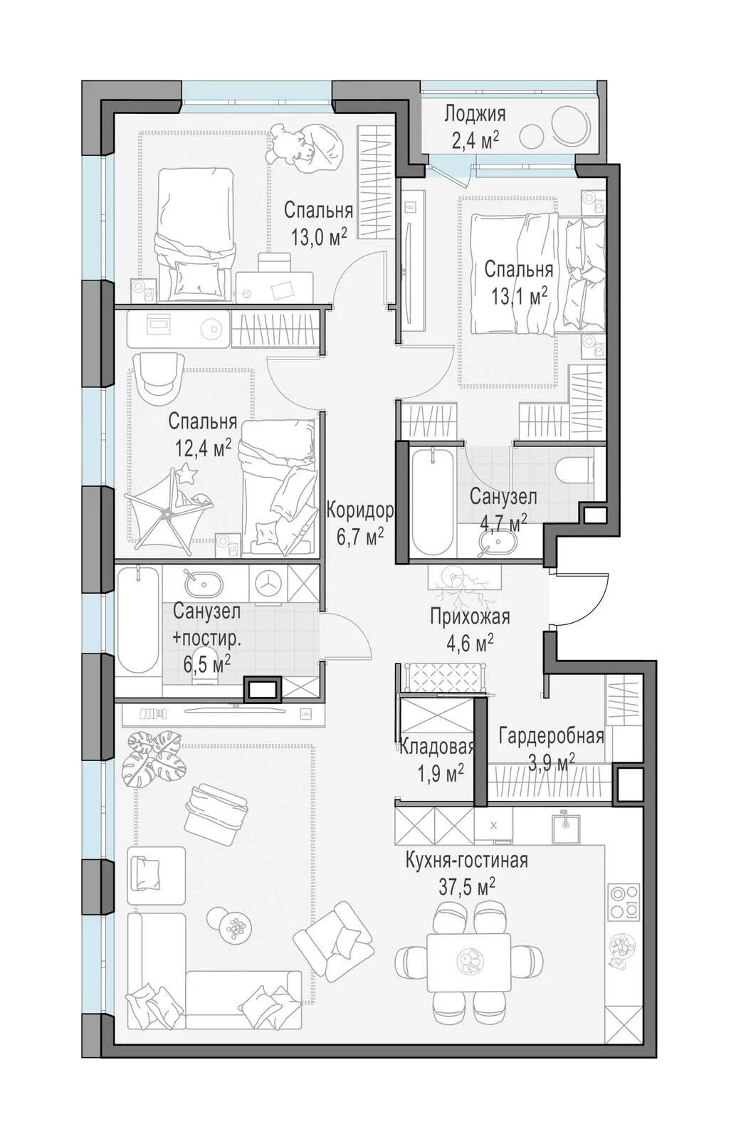ГлавнаяЖилая недвижимостьЖК «Филатов Луг»4-комнатная квартира № 1