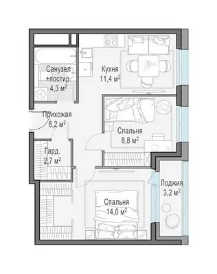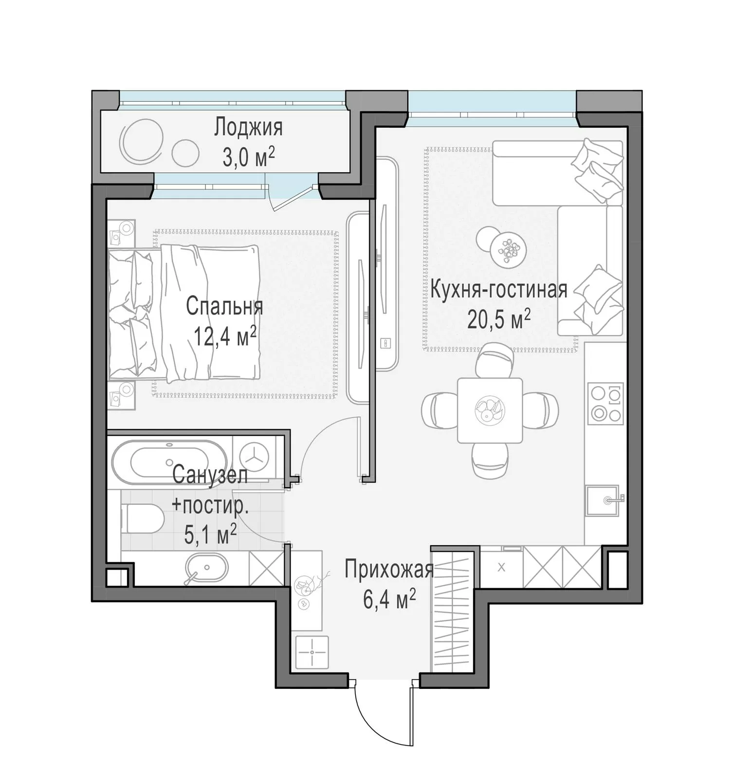 ГлавнаяЖилая недвижимостьЖК «Филатов Луг»2-комнатная квартира № 1