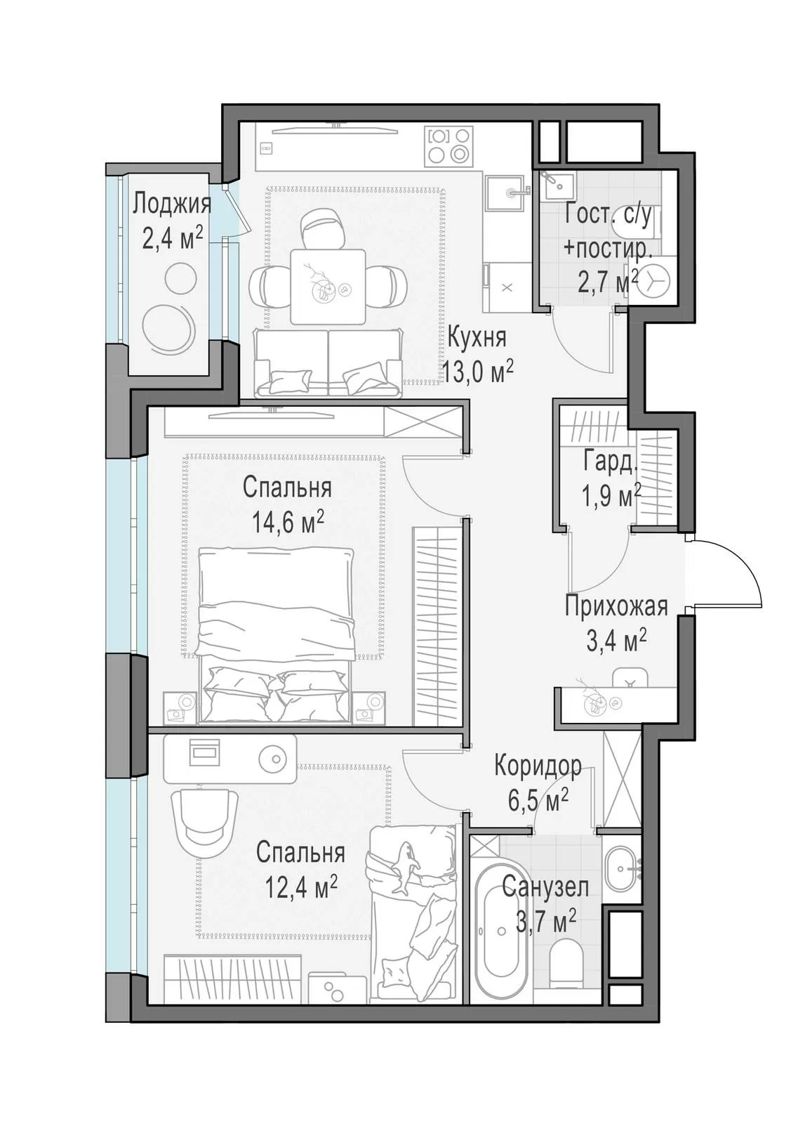 ГлавнаяЖилая недвижимостьЖК «Филатов Луг»2-комнатная квартира № 5