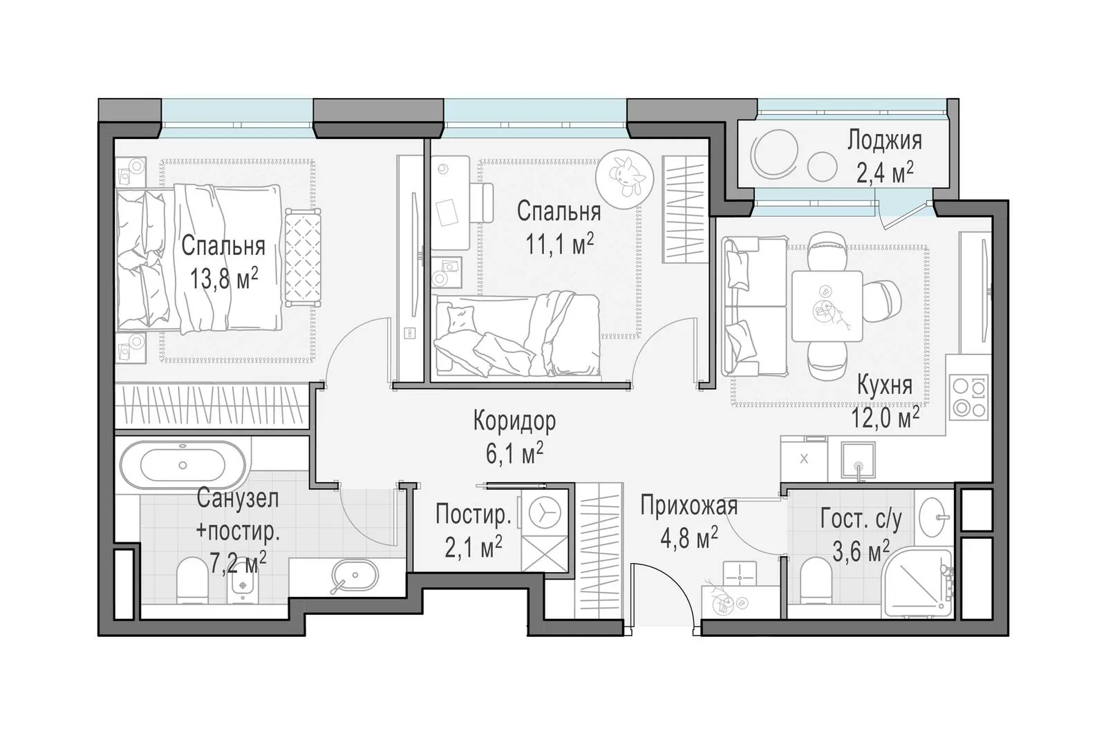 ГлавнаяЖилая недвижимостьЖК «Филатов Луг»2-комнатная квартира № 1
