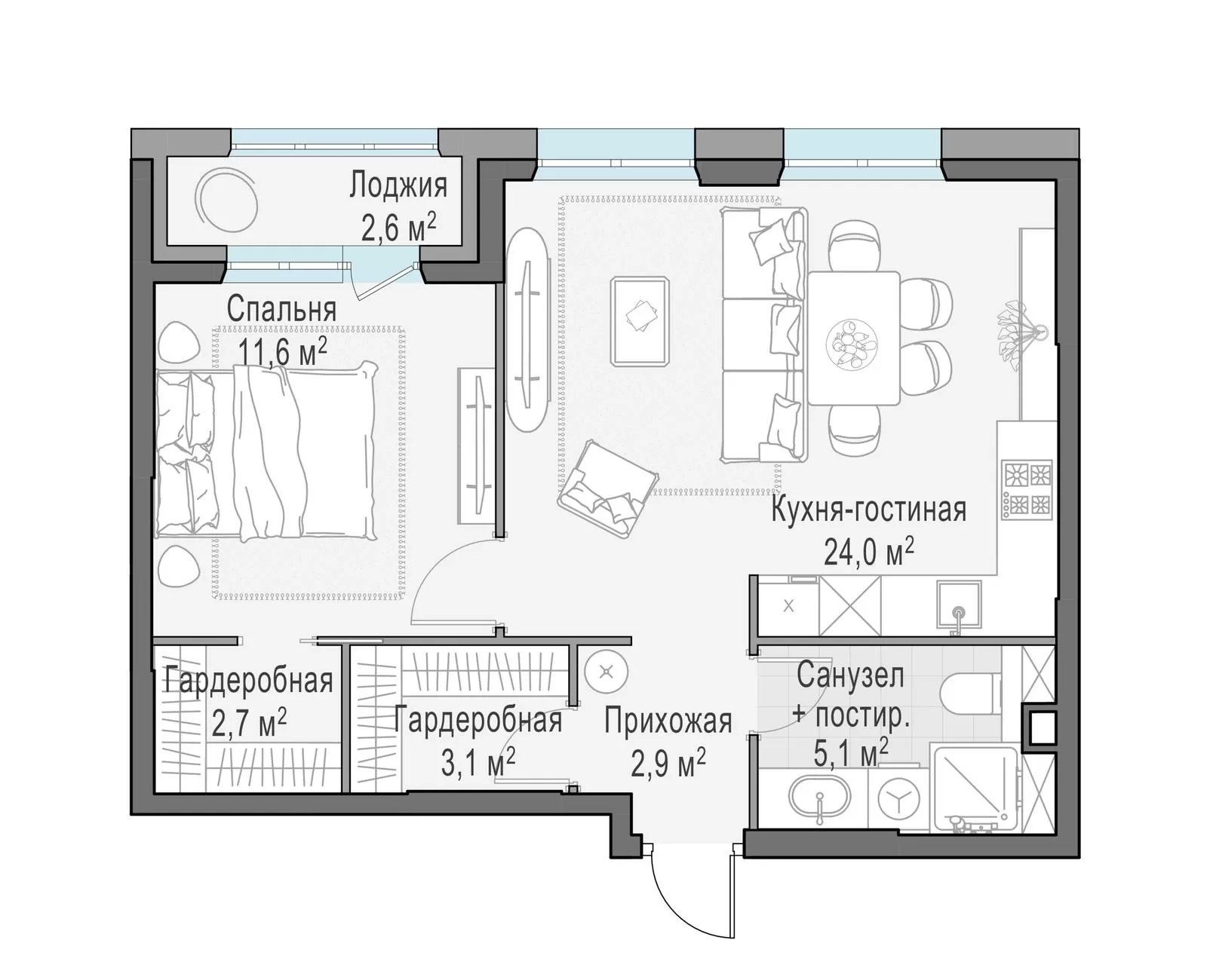 ГлавнаяЖилая недвижимостьЖК «Филатов Луг»2-комнатная квартира № 1
