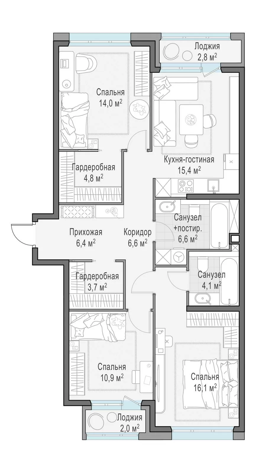 • Квартиры с предчистовой, с чистовой отделкой, а также без отделки