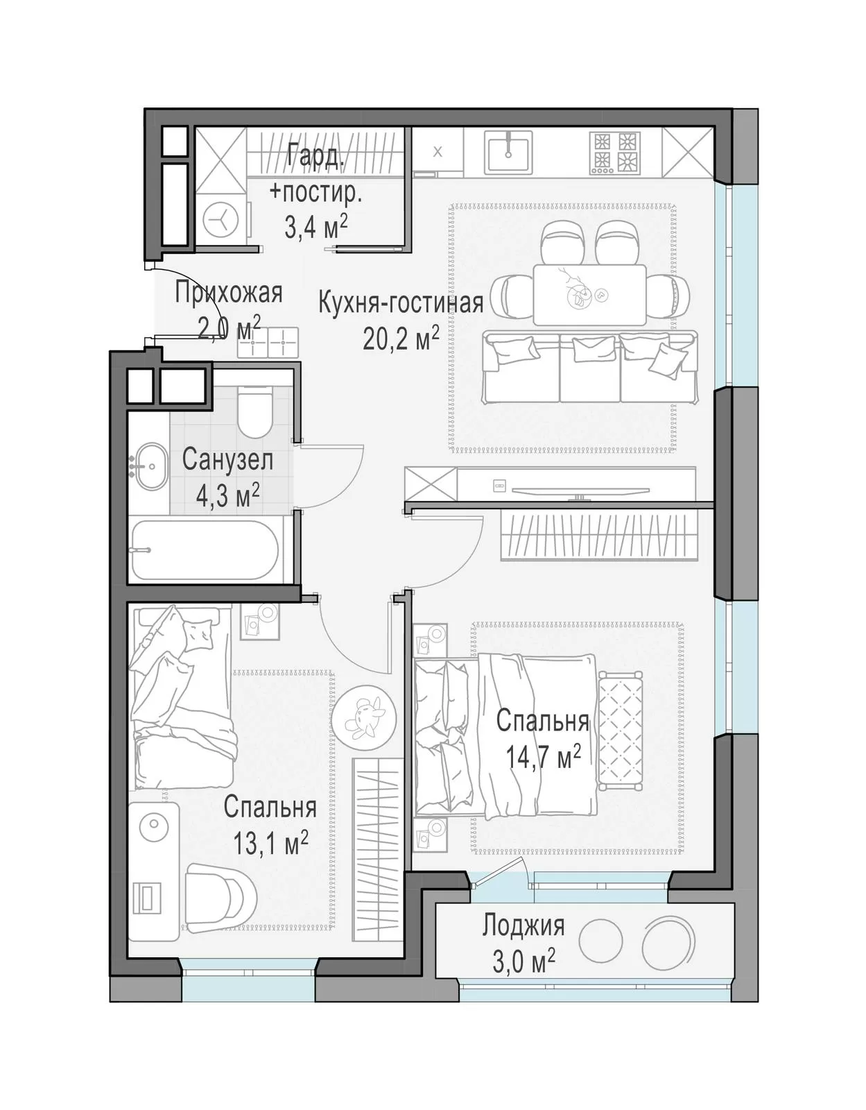 ГлавнаяЖилая недвижимостьЖК «Филатов Луг»3-комнатная квартира № 5