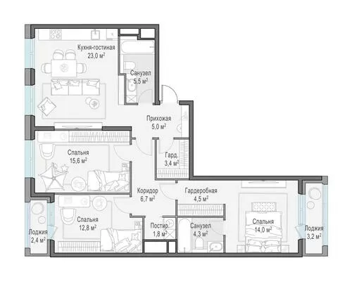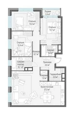 ГлавнаяЖилая недвижимостьЖК «Филатов Луг»4-комнатная квартира № 1