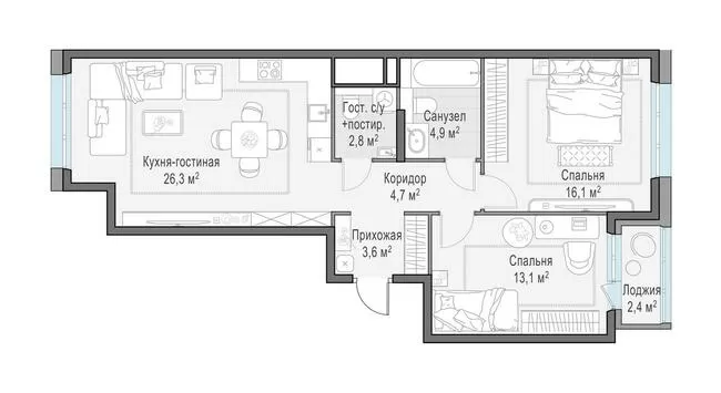 ГлавнаяЖилая недвижимостьЖК «Филатов Луг»3-комнатная квартира № 8