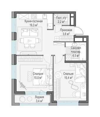 ГлавнаяЖилая недвижимостьЖК «Филатов Луг»3-комнатная квартира № 5