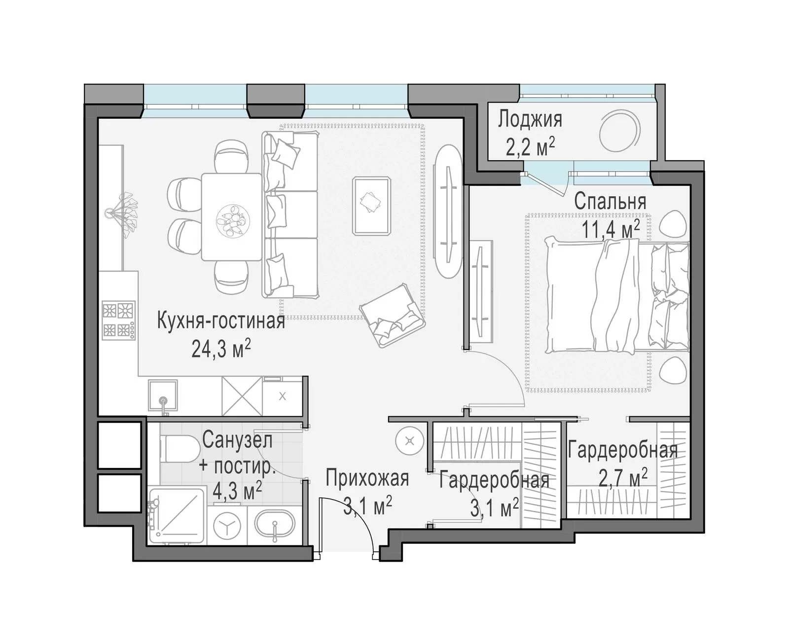 ГлавнаяЖилая недвижимостьЖК «Филатов Луг»2-комнатная квартира № 4