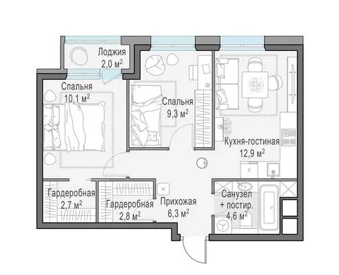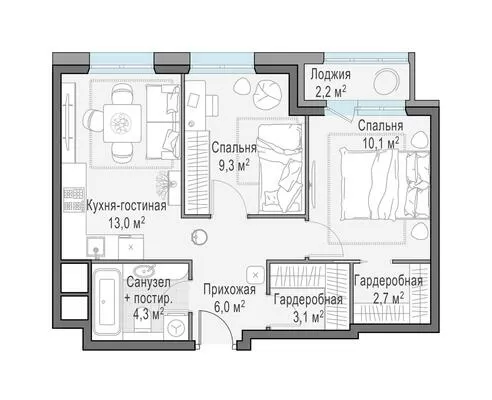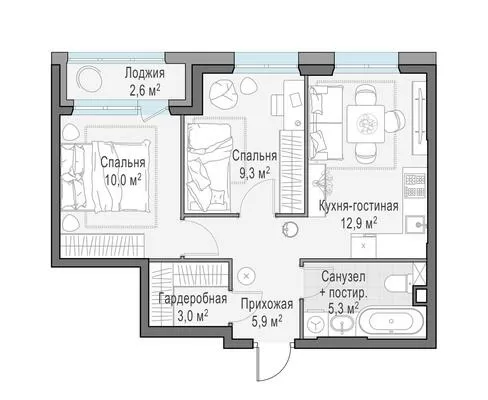 ГлавнаяЖилая недвижимостьЖК «Филатов Луг»2-комнатная квартира № 5