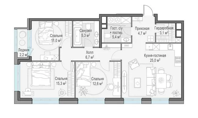 ГлавнаяЖилая недвижимостьЖК «Филатов Луг»4-комнатная квартира № 2