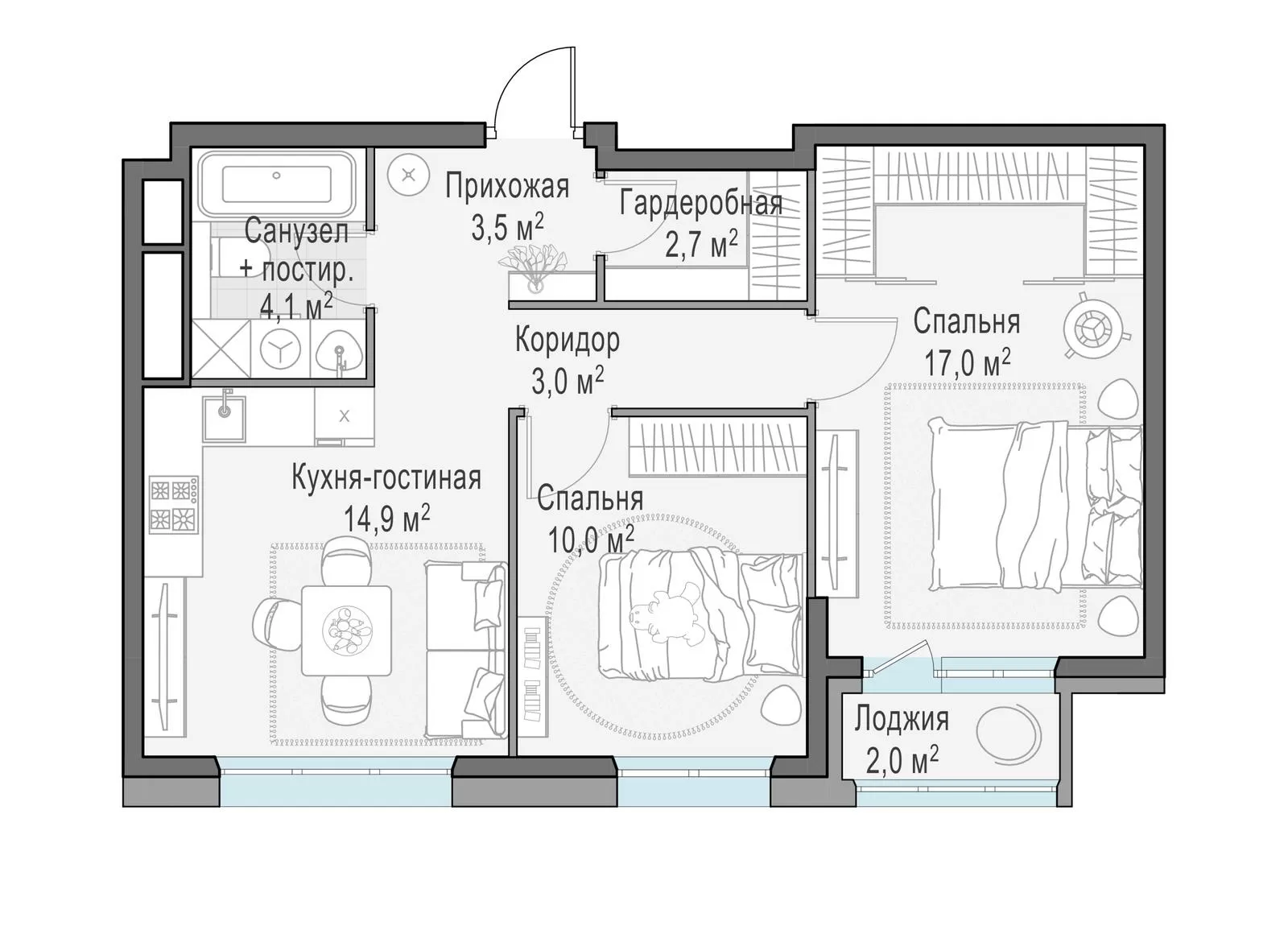 ГлавнаяЖилая недвижимостьЖК «Филатов Луг»2-комнатная квартира № 7