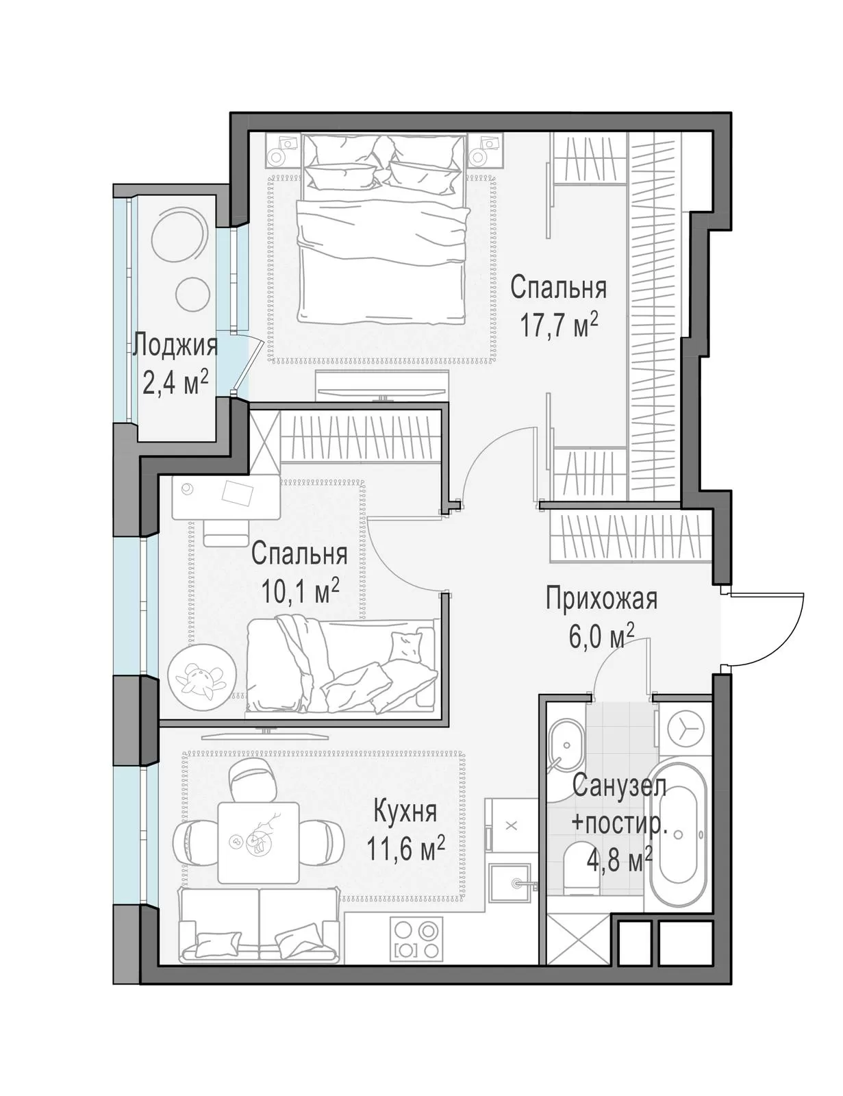 ГлавнаяЖилая недвижимостьЖК «Филатов Луг»2-комнатная квартира № 1