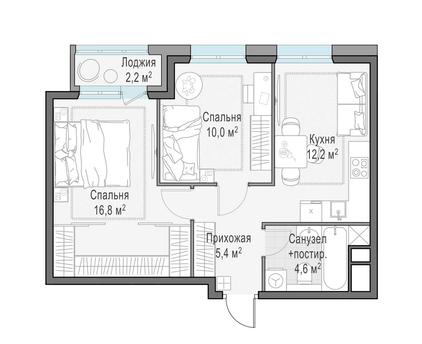 ГлавнаяЖилая недвижимостьЖК «Филатов Луг»2-комнатная квартира № 4