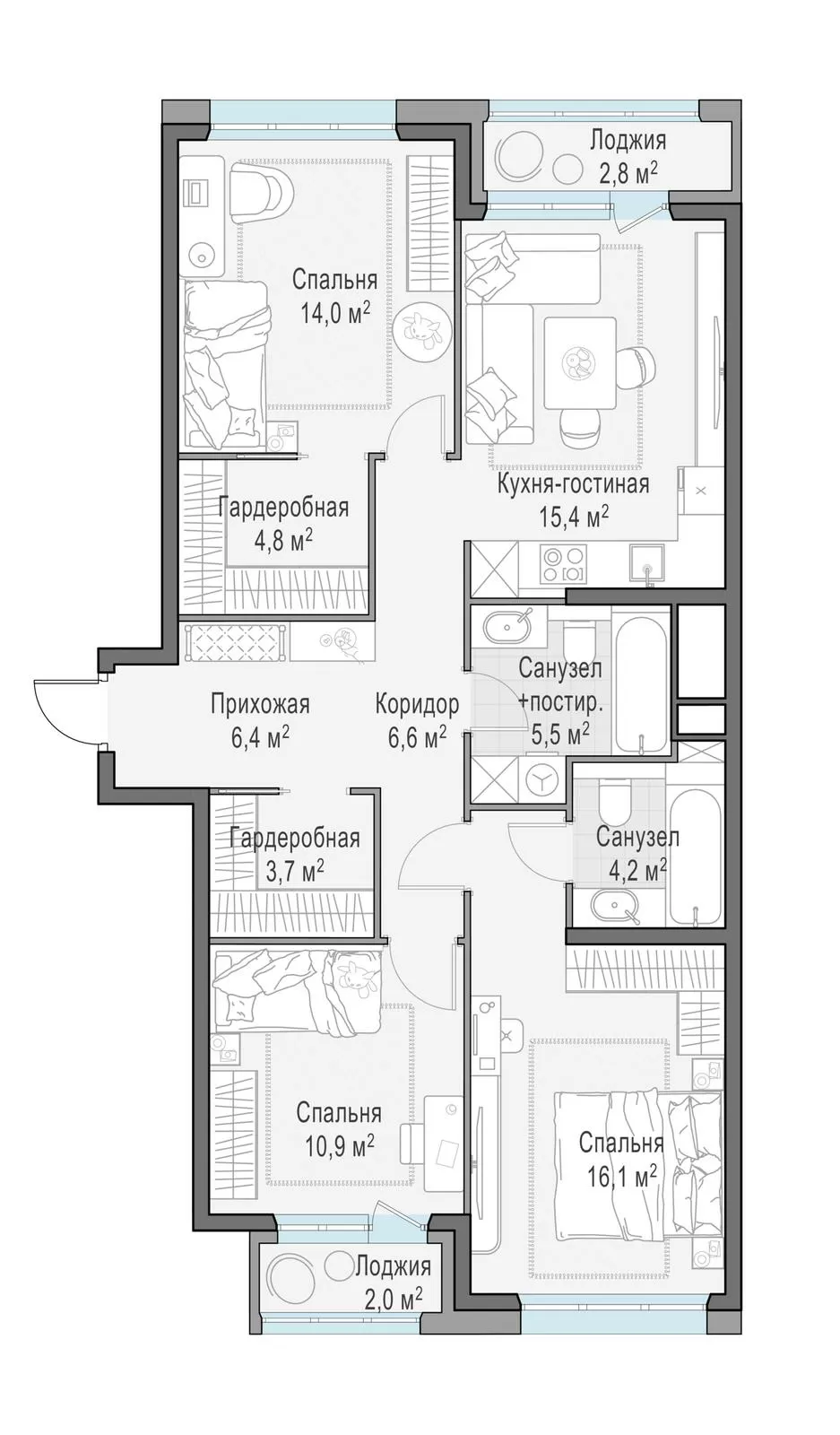 • Квартиры с предчистовой, с чистовой отделкой, а также без отделки