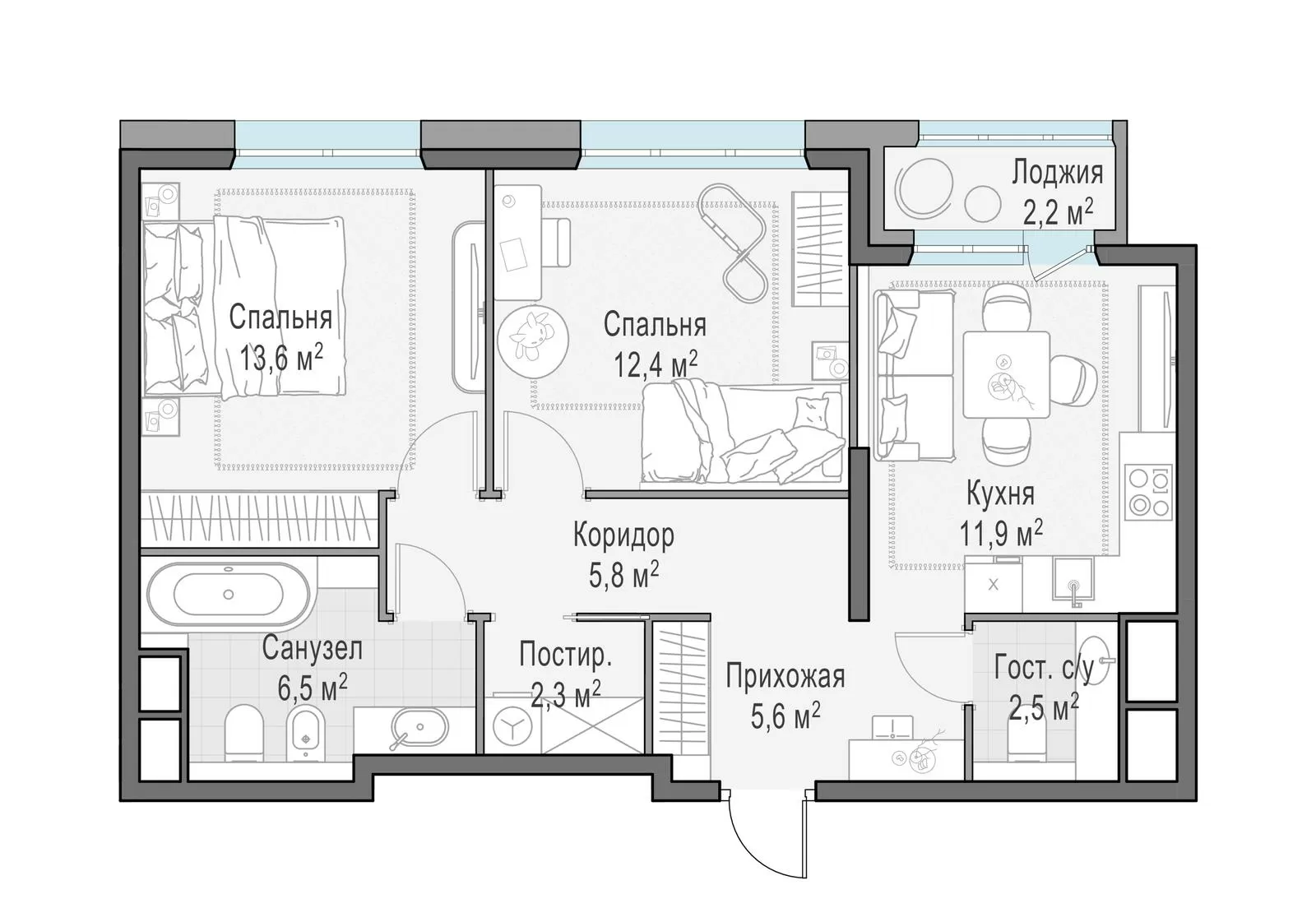 ГлавнаяЖилая недвижимостьЖК «Филатов Луг»2-комнатная квартира № 3