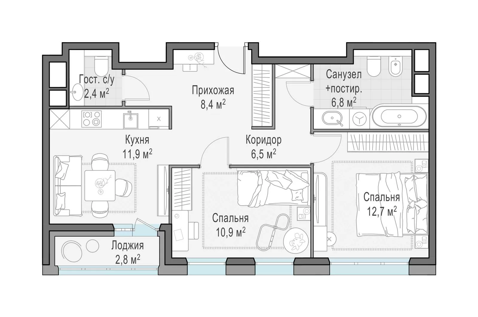 ГлавнаяЖилая недвижимостьЖК «Филатов Луг»2-комнатная квартира № 7