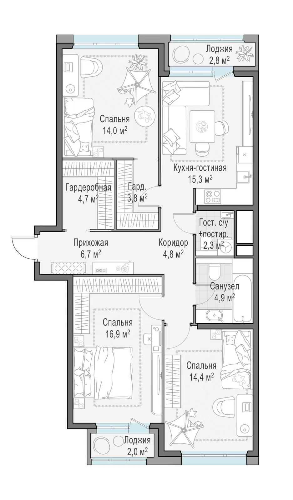 ГлавнаяЖилая недвижимостьЖК «Филатов Луг»3-комнатная квартира № 5