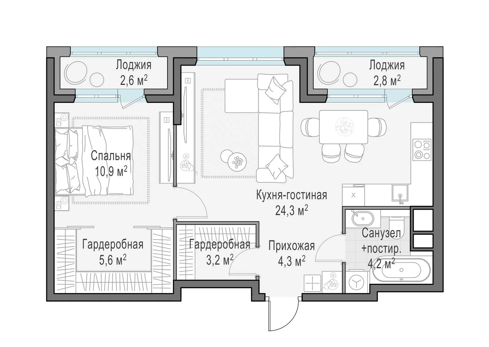 ГлавнаяЖилая недвижимостьЖК «Филатов Луг»2-комнатная квартира № 6