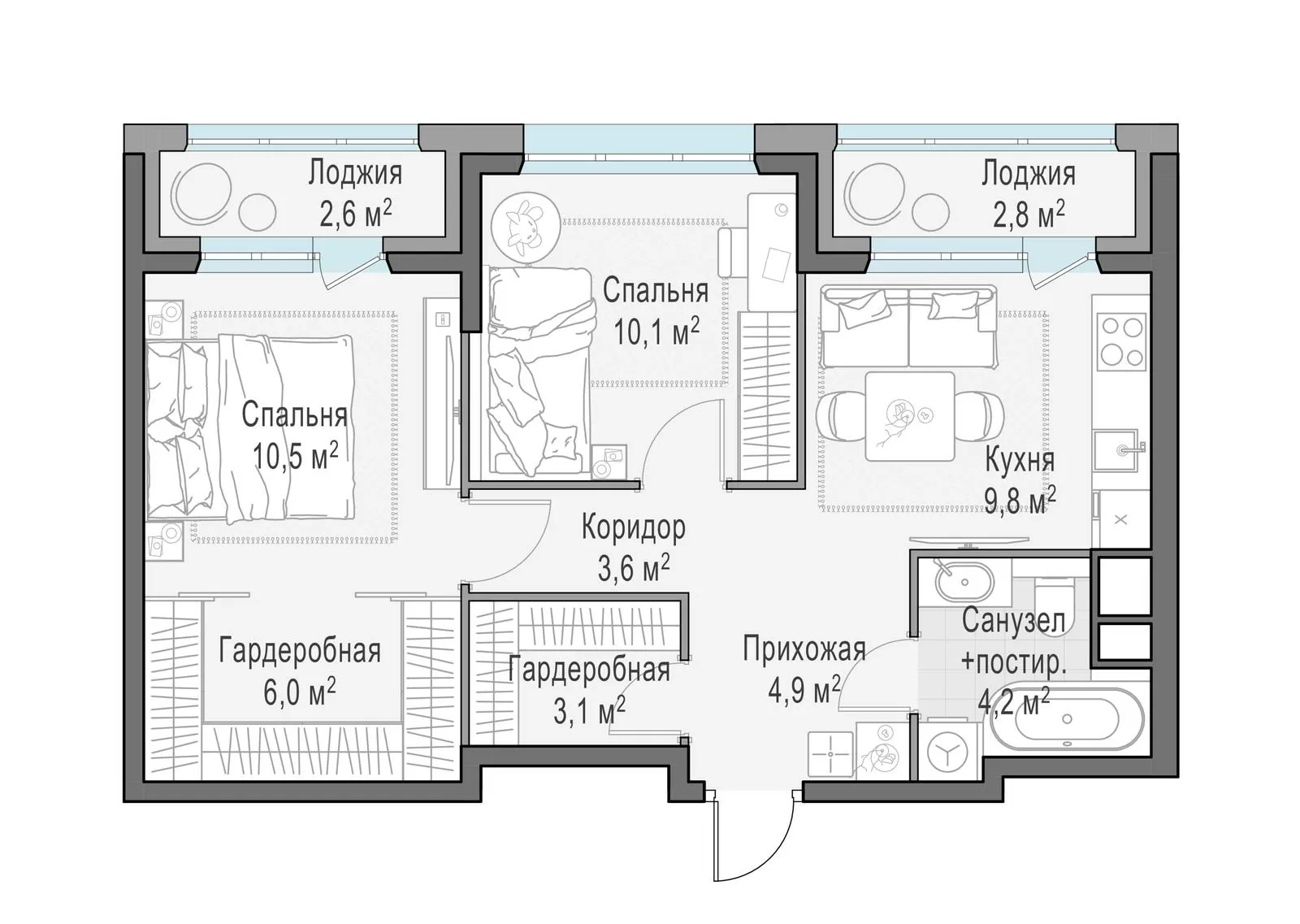 ГлавнаяЖилая недвижимостьЖК «Филатов Луг»2-комнатная квартира № 6