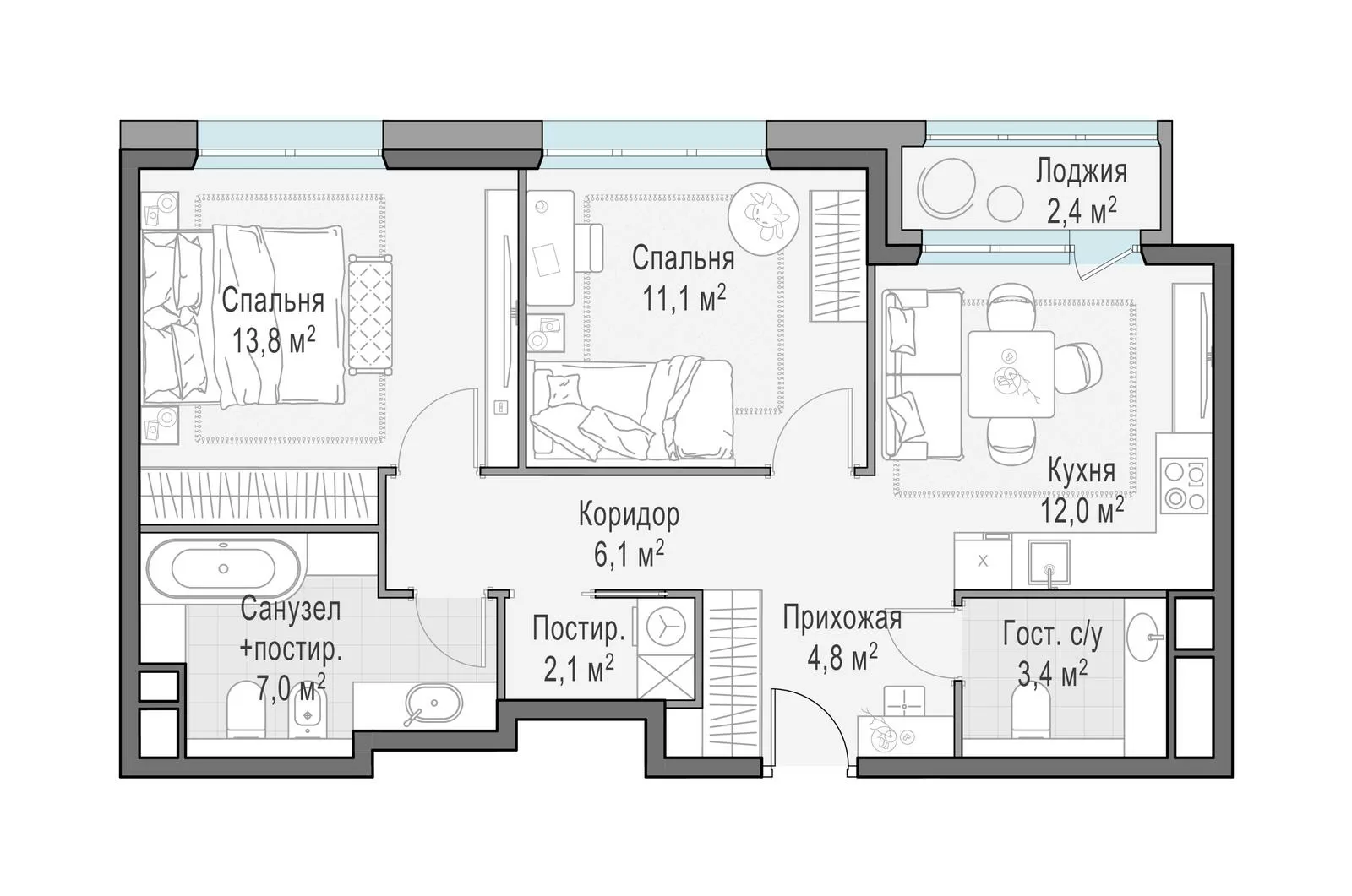 ГлавнаяЖилая недвижимостьЖК «Филатов Луг»2-комнатная квартира № 1
