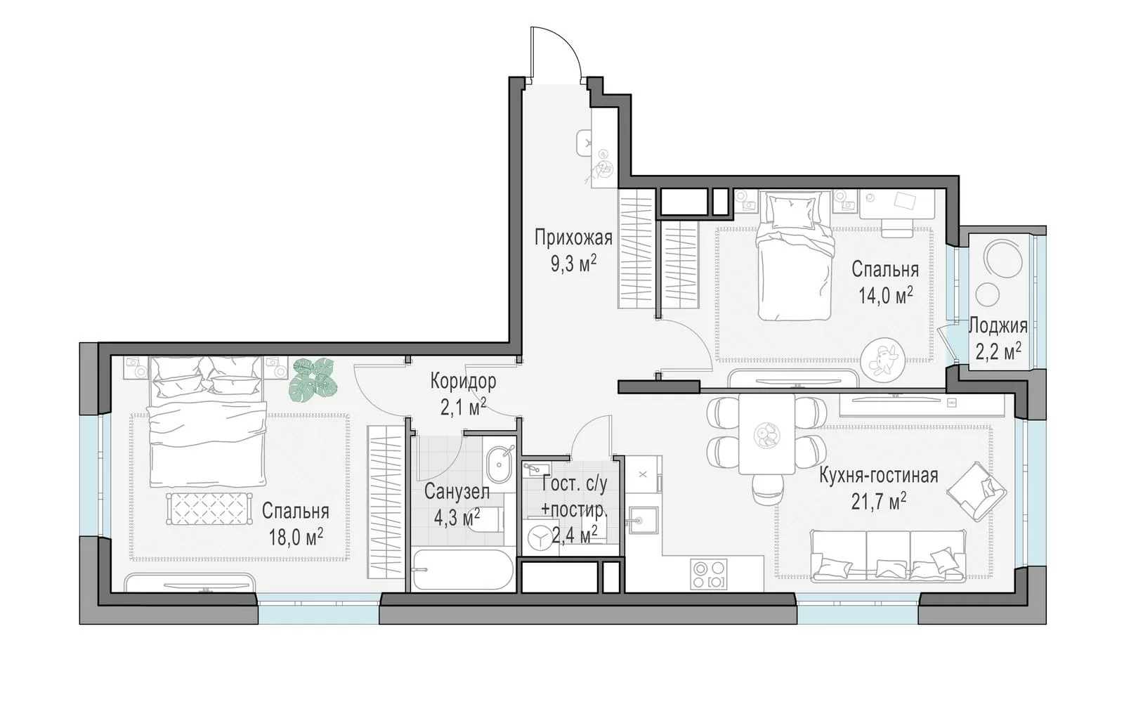 ГлавнаяЖилая недвижимостьЖК «Филатов Луг»2-комнатная квартира № 3