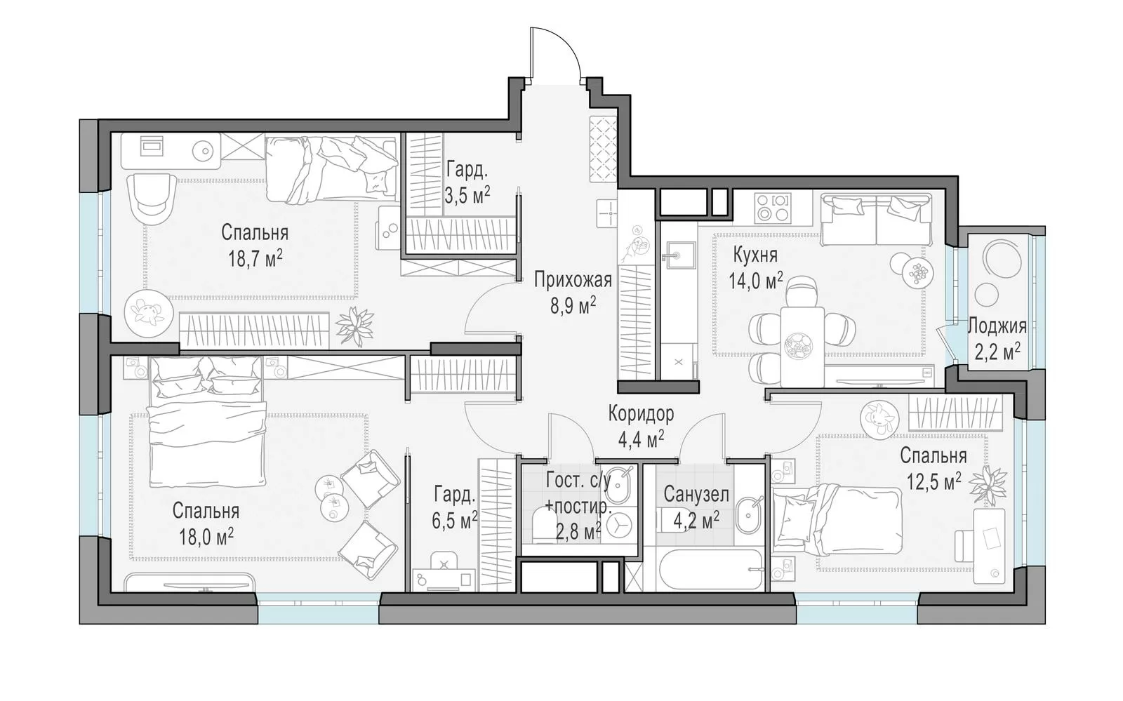 ГлавнаяЖилая недвижимостьЖК «Филатов Луг»3-комнатная квартира № 3