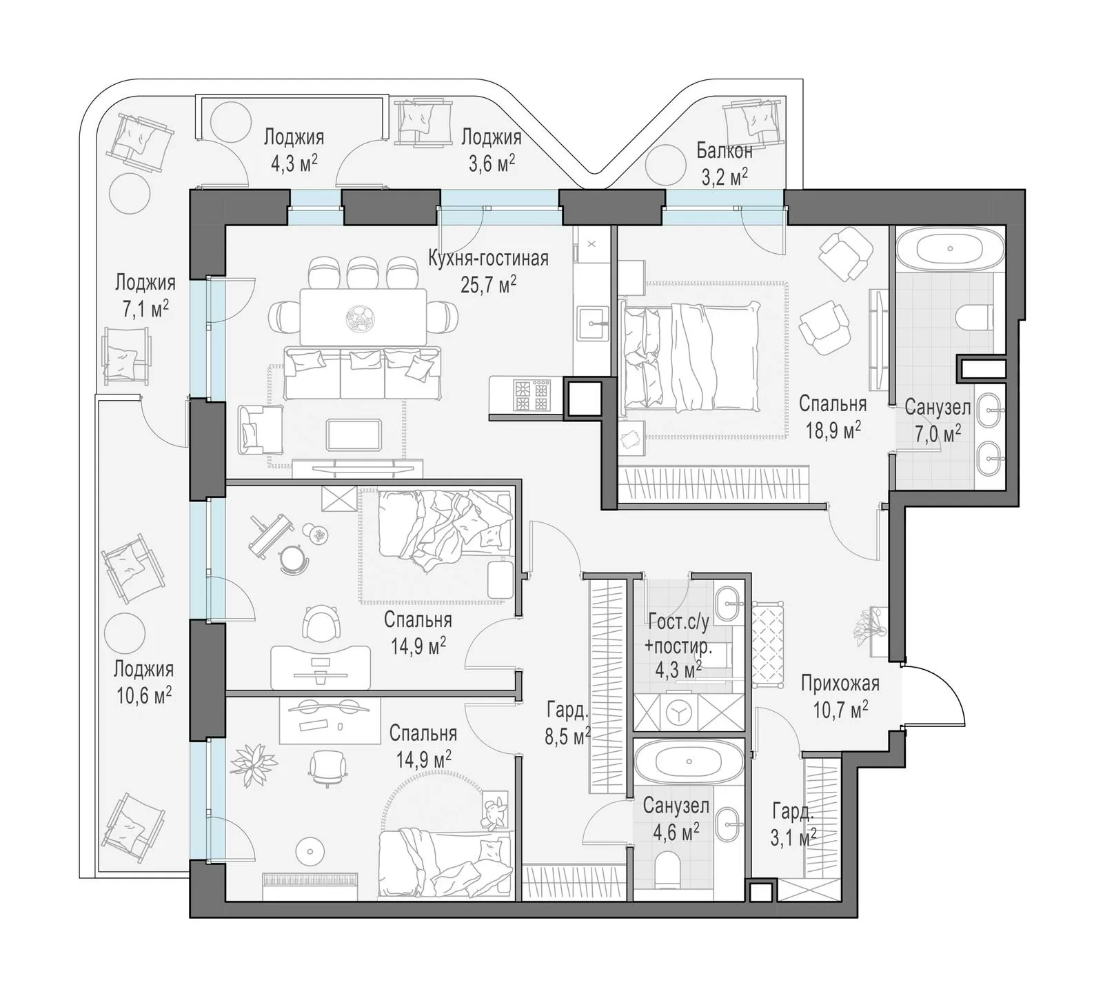 126 м² · 3 комнаты · 11/18 этаж · Объект сдан