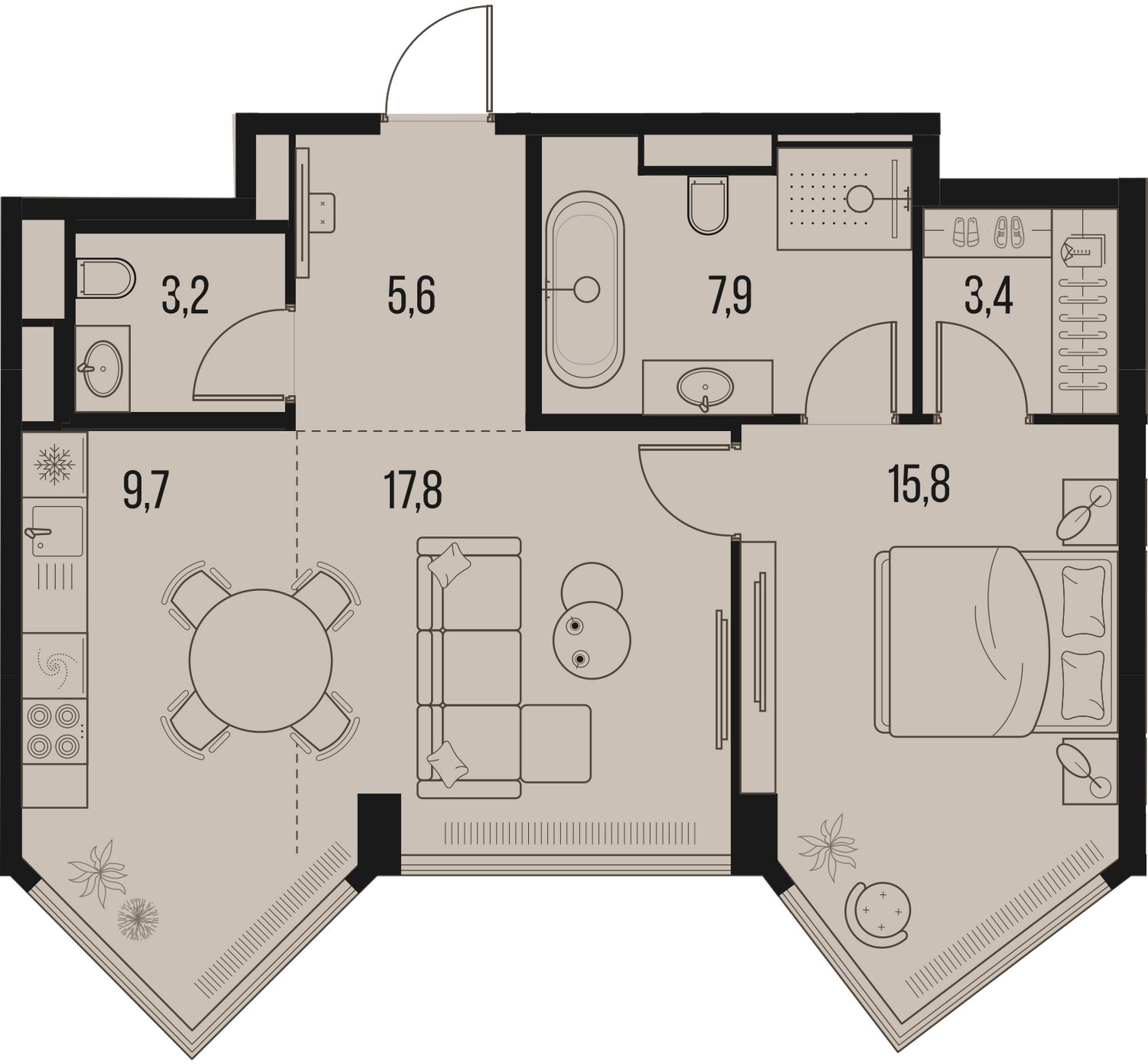 59.8 м² · 2 комнаты · 11/39 этаж · Декабрь 2027