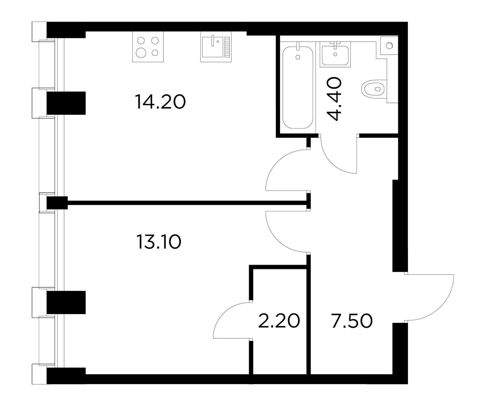 40.7 м² · 1 комната · 16/30 этаж · Январь 2027