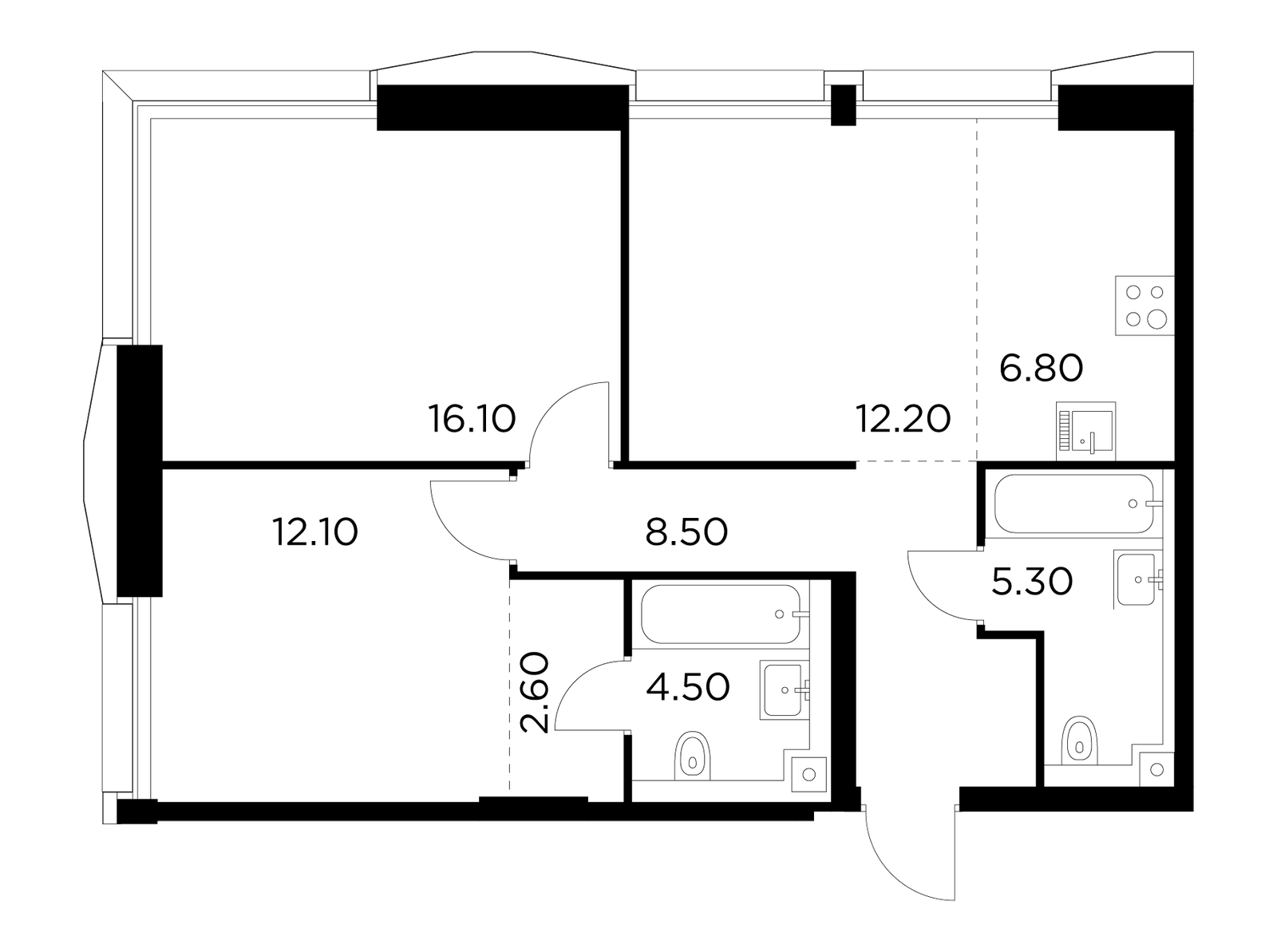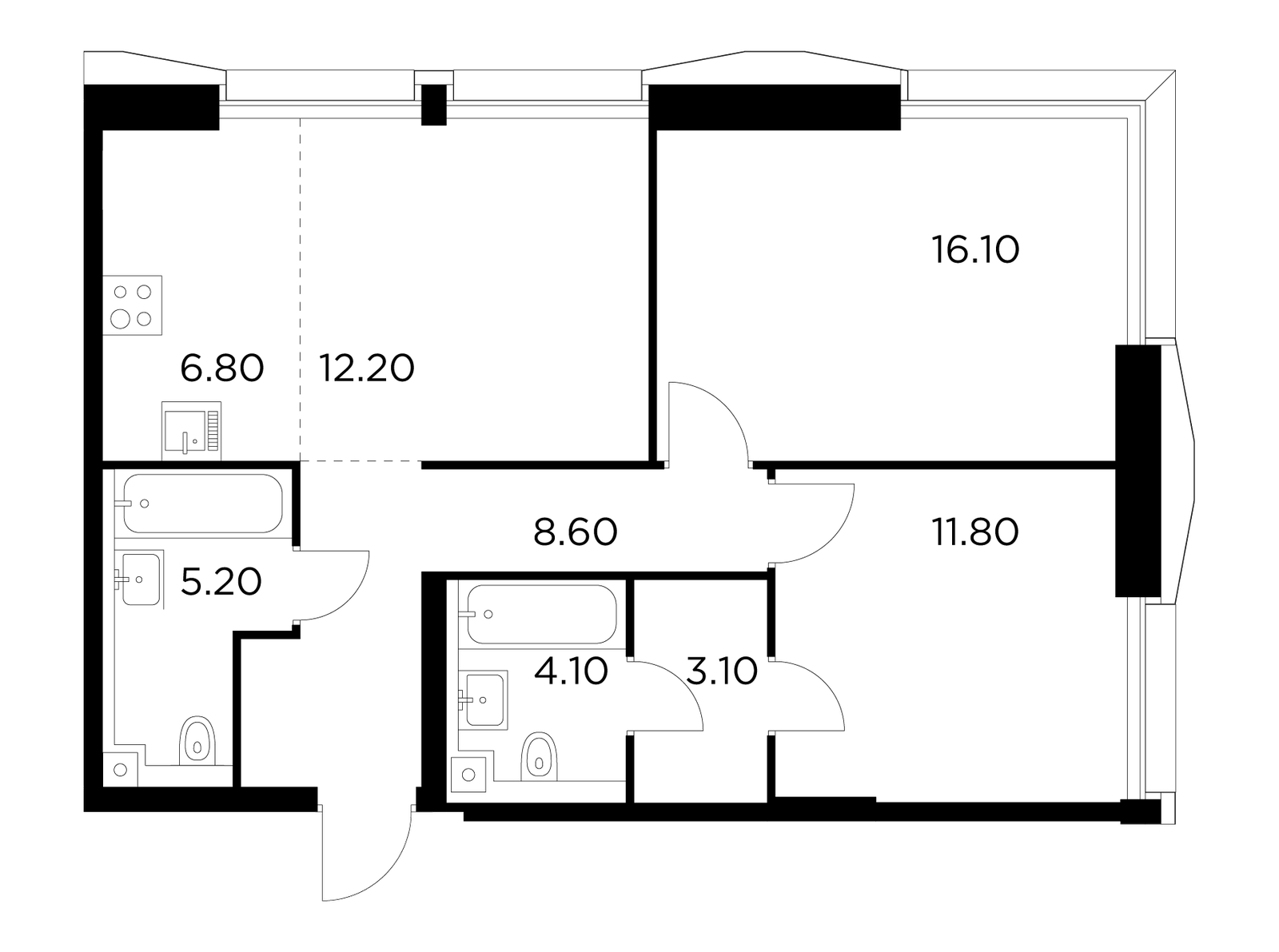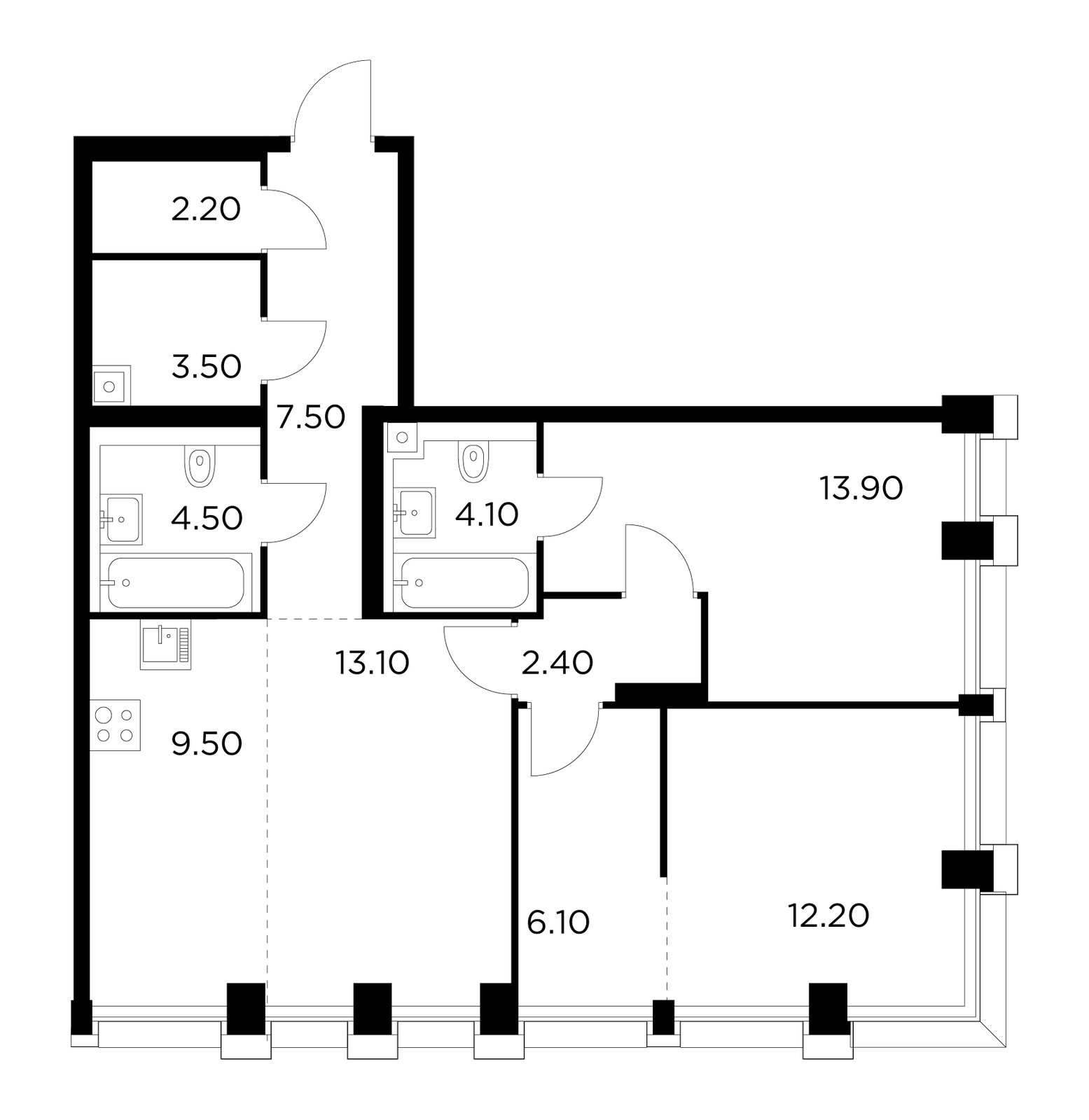 ГлавнаяЖилая недвижимостьЖК "INJOY" - ЖК "ИНДЖОЙ"3-комнатная квартира № 3