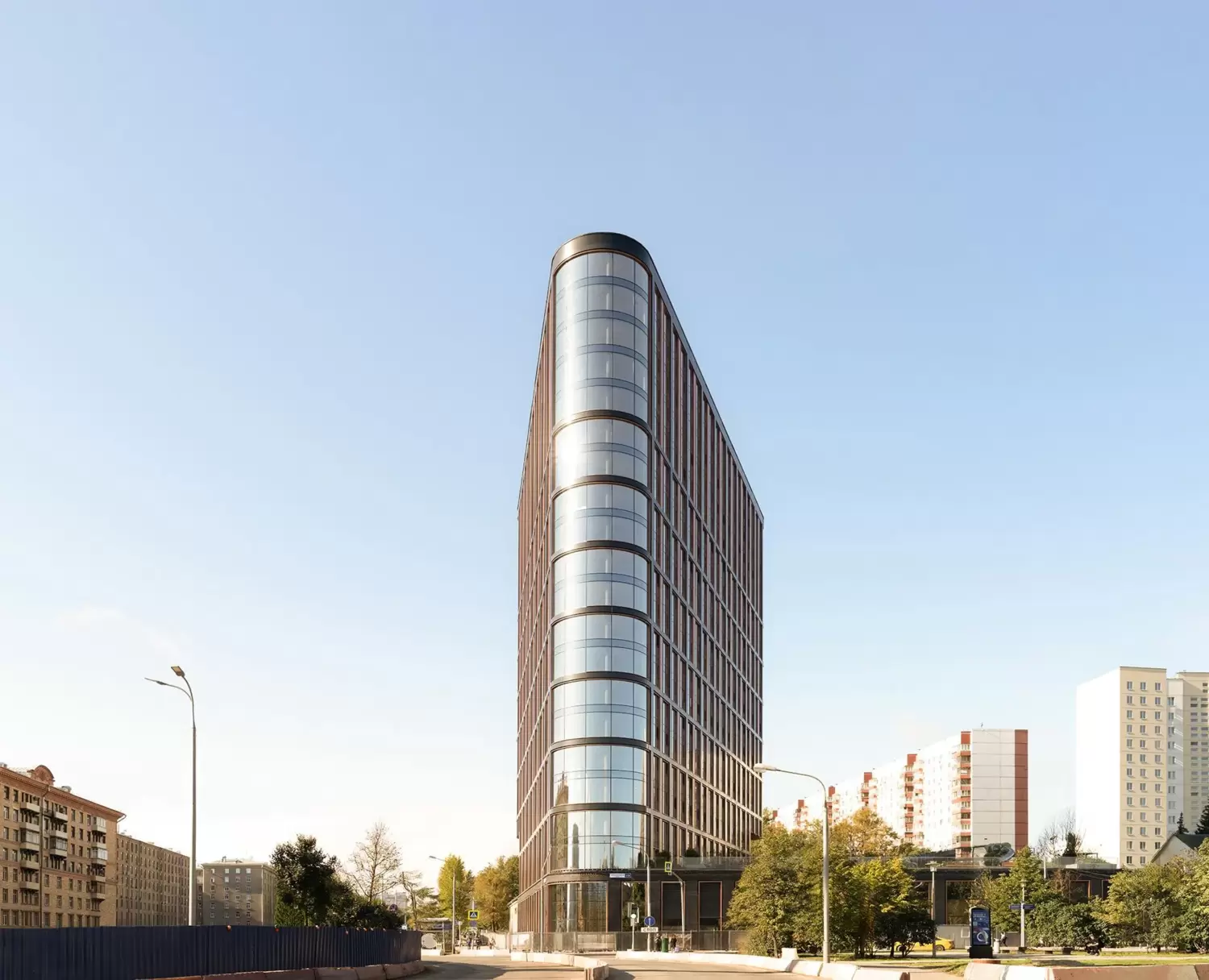 Архитектура комплекса, разработанная бюро UNK project, подчинена идее легкости и максимальных видовых характеристик. Более 50% площади фасада занимает панорамное остекление, а само здание развернуто таким образом, что из большинства квартир открываются престижные виды на МГУ и башни Москва-Сити.