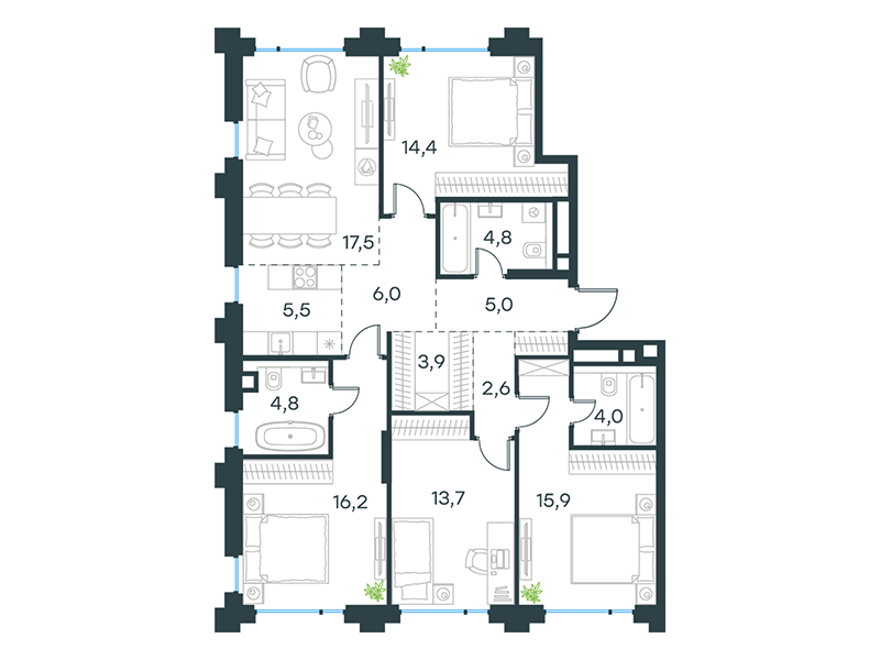 | B (2) | Март 2026 | 1 | 17 | 3 | 3 | 4 | 94.6 | 77 090 790 | без отделки | ![]() | 3 |