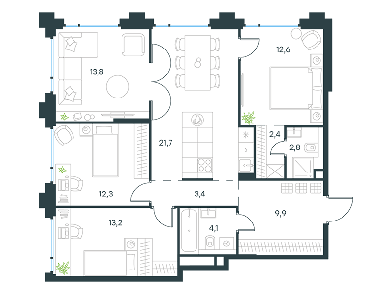 ГлавнаяЖилая недвижимостьLevel Бауманская ЖК4-комнатная квартира № 3