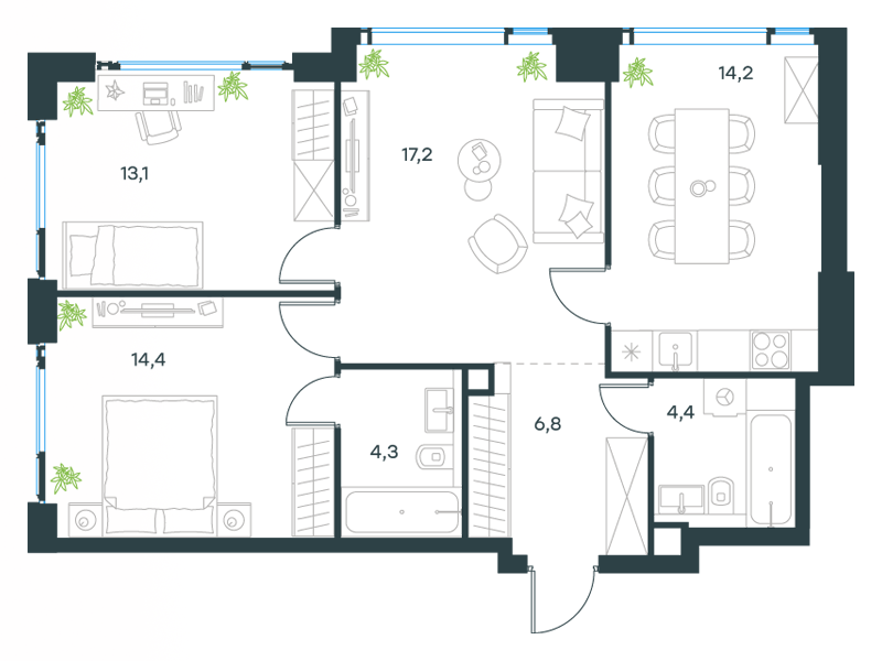 | 3 | Март 2026 | 1 | 18 | 8 | 8 | 4 | 96.3 | 52 199 791 | с отделкой | ![]() | 8 | ||