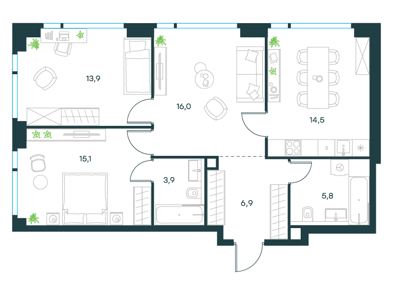 | 4 | Декабрь 2024 | 1 | 39 | 3 | 3 | 2 | 36.4 | 20 349 714 | без отделки | ![]() | 3 | ||