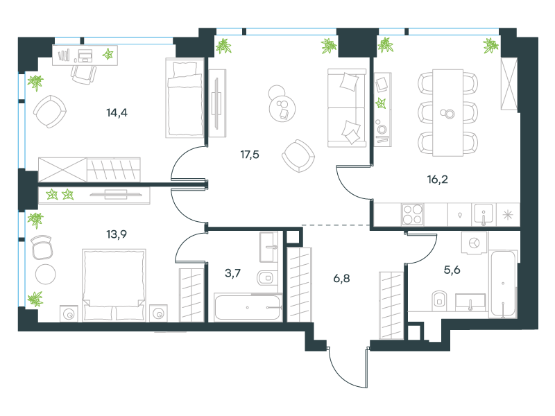ГлавнаяЖилая недвижимостьLevel Мичуринский ЖК3-комнатная квартира № 4