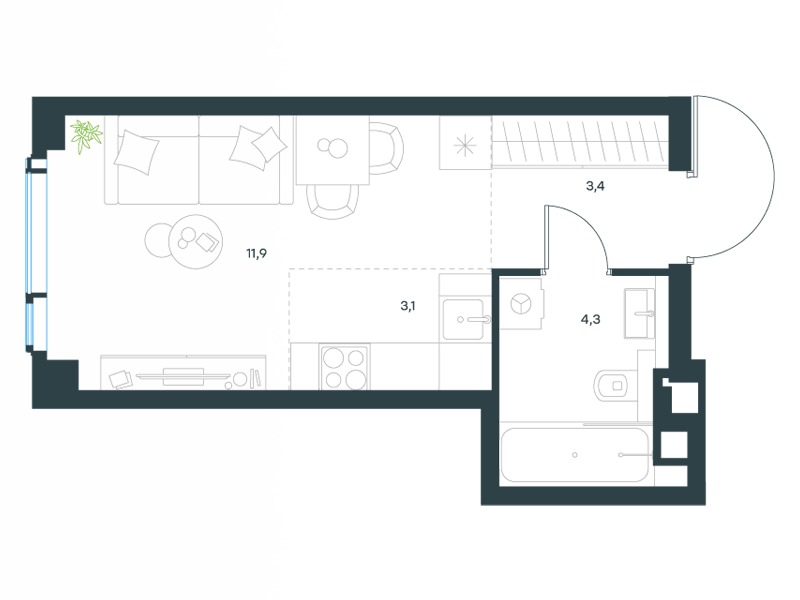 22.9 м² · 1 комната · 17/42 этаж · Март 2026