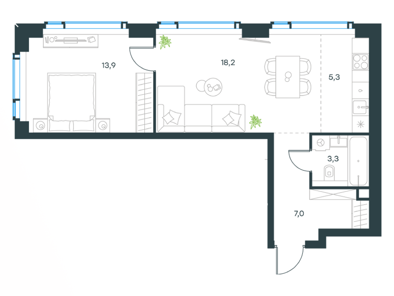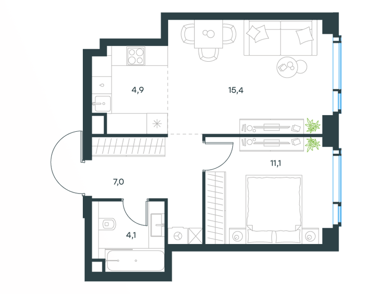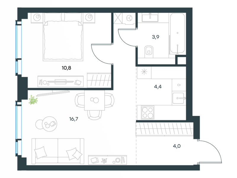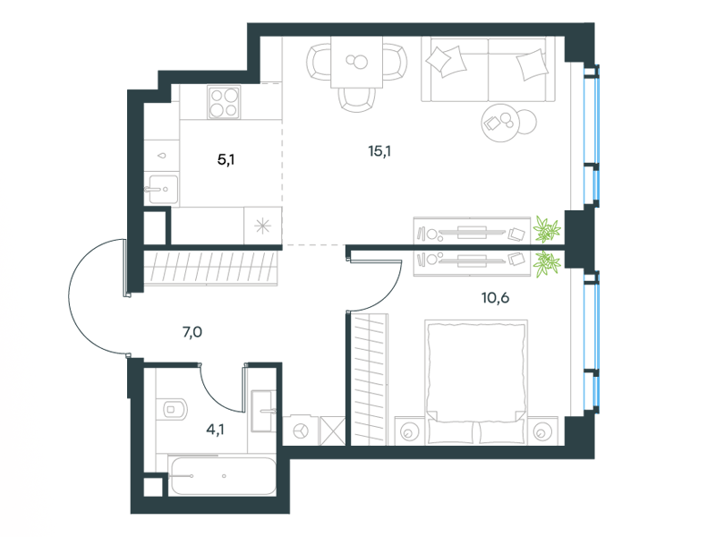 ГлавнаяЖилая недвижимостьLevel Мичуринский ЖК2-комнатная квартира № 8