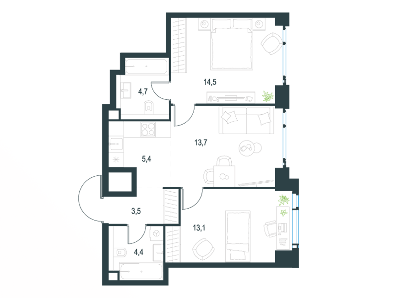 ГлавнаяЖилая недвижимостьLevel Мичуринский ЖК3-комнатная квартира № 6
