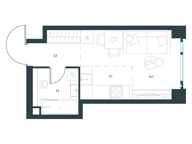 Продажа 1-комнатной квартиры № 9, 22.4 кв.м, этаж 4/54 в Level Мичуринский ЖК
