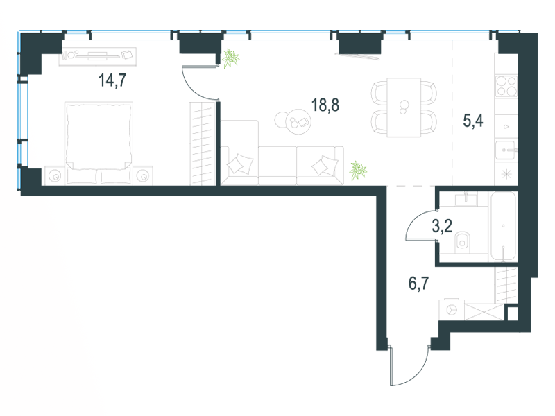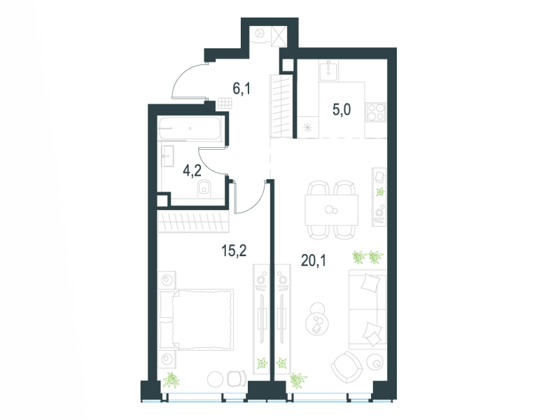 ГлавнаяЖилая недвижимостьLevel Мичуринский ЖК2-комнатная квартира № 1