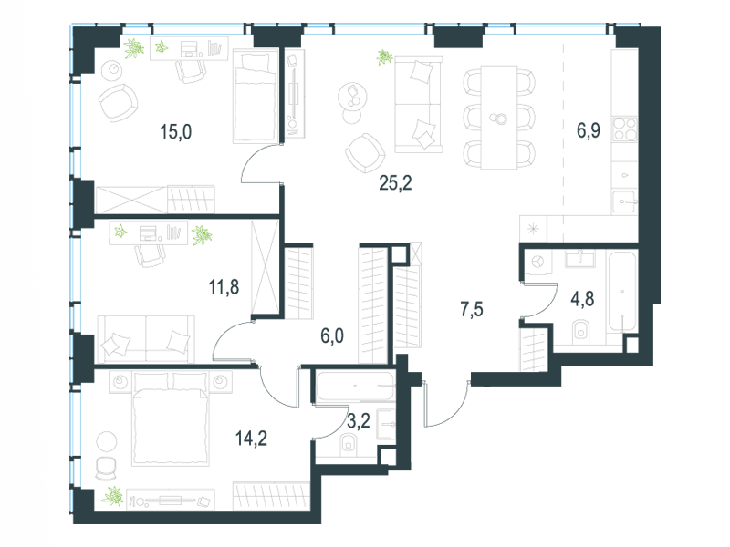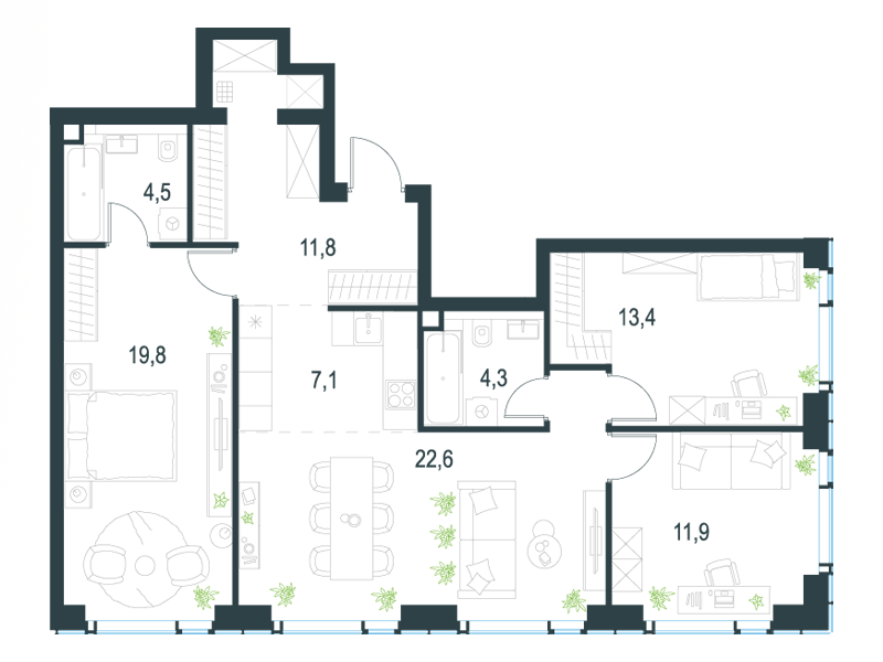 ГлавнаяЖилая недвижимостьLevel Мичуринский ЖК4-комнатная квартира № 8