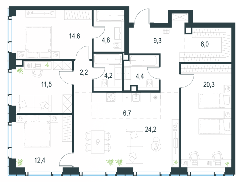 ГлавнаяЖилая недвижимостьLevel Мичуринский ЖК5-комнатная квартира № 1