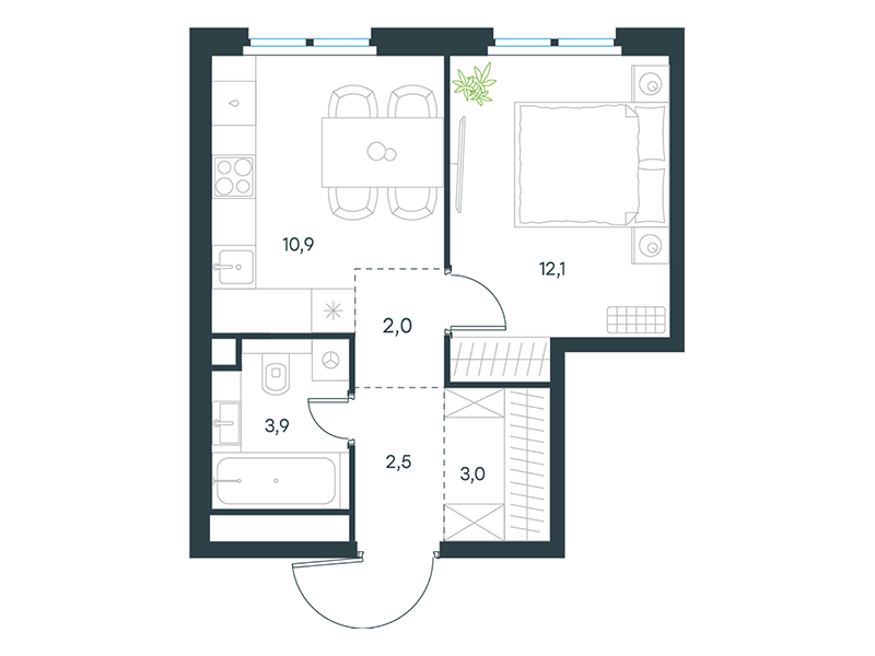 | 3 | Декабрь 2026 | 1 | 31 | 12 | 12 | 2 | 48.8 | 20 946 389 | без отделки | 12 | |||