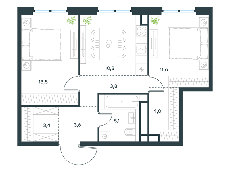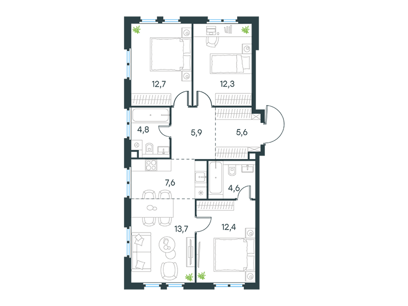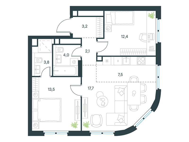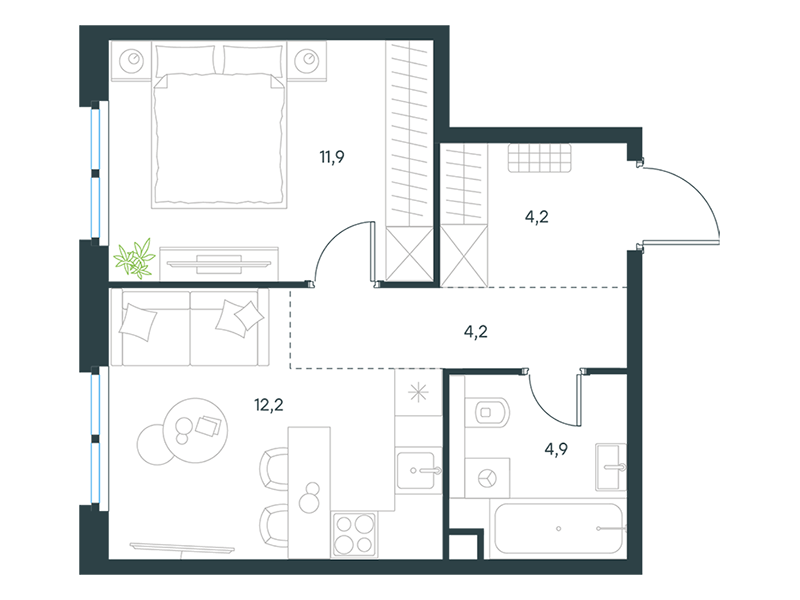 | 2 | Декабрь 2026 | 1 | 2 | 4 | 4 | 4 | 79.6 | 33 174 332 | без отделки | ![]() | 4 |