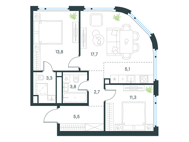 | 5 | Декабрь 2026 | 1 | 11 | 11 | 11 | 2 | 46.3 | 23 261 329 | с отделкой | ![]() | 11 | ||