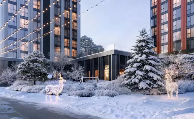 Комплексное решение проекта включает собственный торговый центр с кафе, магазинами, салонами красоты и др. объектами инфраструктуры. Предусмотрен двухуровневый подземный паркинг.