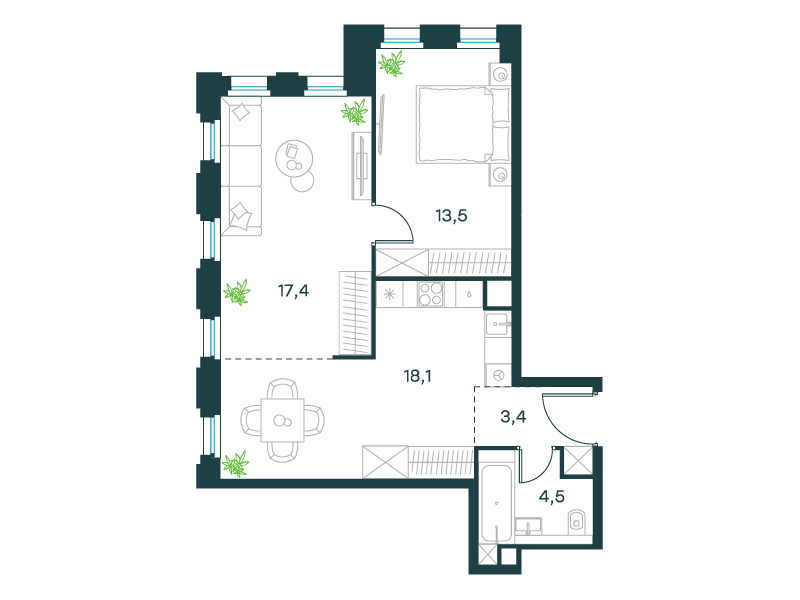 5 | Март 2027 | 1 | 18 | 7 | 7 | 1 | 48.3 | 19 123 575 | без отделки | ![]() | 7 |